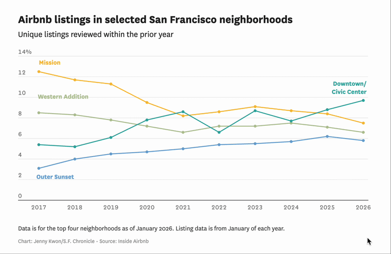 What I did: I designed and developed a map showing all publicly accessible restrooms throughout the city as of March 2024 to accompany a piece on feces complaints steadily rising even with city-run public restroom programs. Readers can filter by “type” of restroom (for instance, whether the restroom is within a BART train station) and filter ones that are wheelchair accessible, open 24 hours or staffed. They can also click on each point to see locations and hours and days that the restrooms are open. I also compiled data from multiple sources, confirmed and revised information, including locations, availability and accessibility, with multiple public and private sources, developed the map and did background reporting.